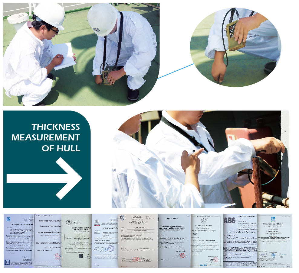 1、船體測厚,根據(jù)各船級社的規(guī)范要求,提供各類船型的測厚服務,憑借豐 富的專業(yè)知識和經(jīng)驗,為船東的船舶修理提供客觀規(guī)范的數(shù)字依據(jù)和技術支持。